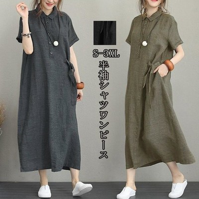 ワンピース ロングワンピース レディース シャツワンピース 40代 チュニック 30代 マキシ 夏 綿 ロング 半袖 体型カバー 無地 薄手 大き 通販 Lineポイント最大get Lineショッピング